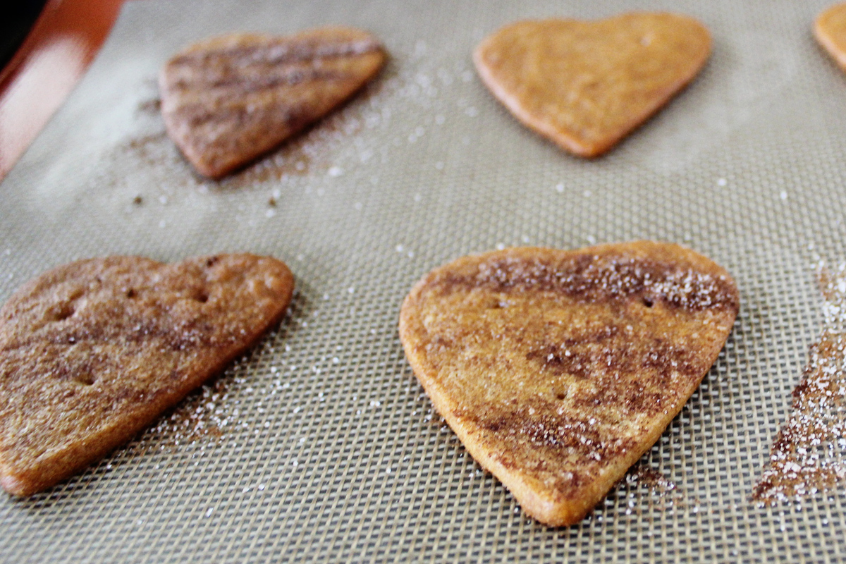 In the bowl of your stand mixer add the flours, sugar, baking soda and salt, stir to combine. Add the coconut oil and mix on low until the mixture is crumbly. In separate bowl whisk together the honey, almond milk and vanilla, add it to the flour mixture at low speed until the dough comes together. Transfer the dough onto plastic wrap and cover, chill for 2-4 hours. Preheat your oven to 350º, line a baking sheet with a mat or parchment. On a clean floured surface roll the dough out to 1/8″ thick and cut into desired shapes (cookie cutters or traditional squares), sprinkle with cinnamon sugar if desired and bake for 8-10 minutes. If rolling dough 1/4″ thick bake for 12-15 minutes, be careful not to burn them, check the doneness often. Remove from the oven, cool and serve.