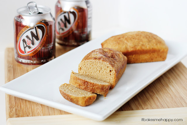 I read quite a few “beer bread” recipes online just as a refresher, so I would have something to go off of and I decided to adapt this Honey Beer Bread recipe by Ali of Gimme Some Oven. While in the adaptation process I thought I’d go all out and top it off with some cinnamon sugar to play up the sweet root beer notes. I love the sweet, subtle flavor of the resulting bread and because I used my mini loaf pan it baked up in less than 30 minutes. This Cinnamon Sugar Root Beer Bread makes a great snack or breakfast; I’m excited to make French Toast with my leftover bread – enjoy and happy baking!