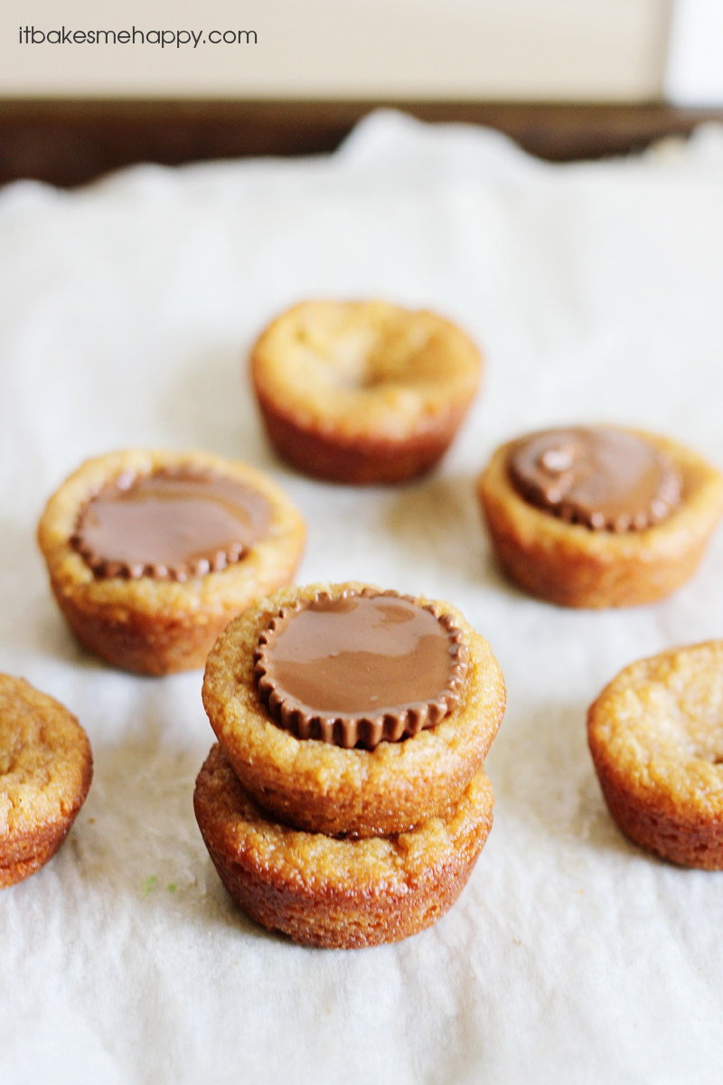 These Peanut Butter Cookie Cups are soft, delicious little bites of heaven stuffed with miniature peanut butter cups.