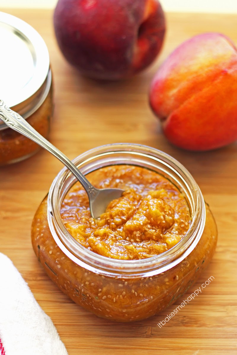 Easy, Honey Vanilla Peach Butter made with chia seeds.
